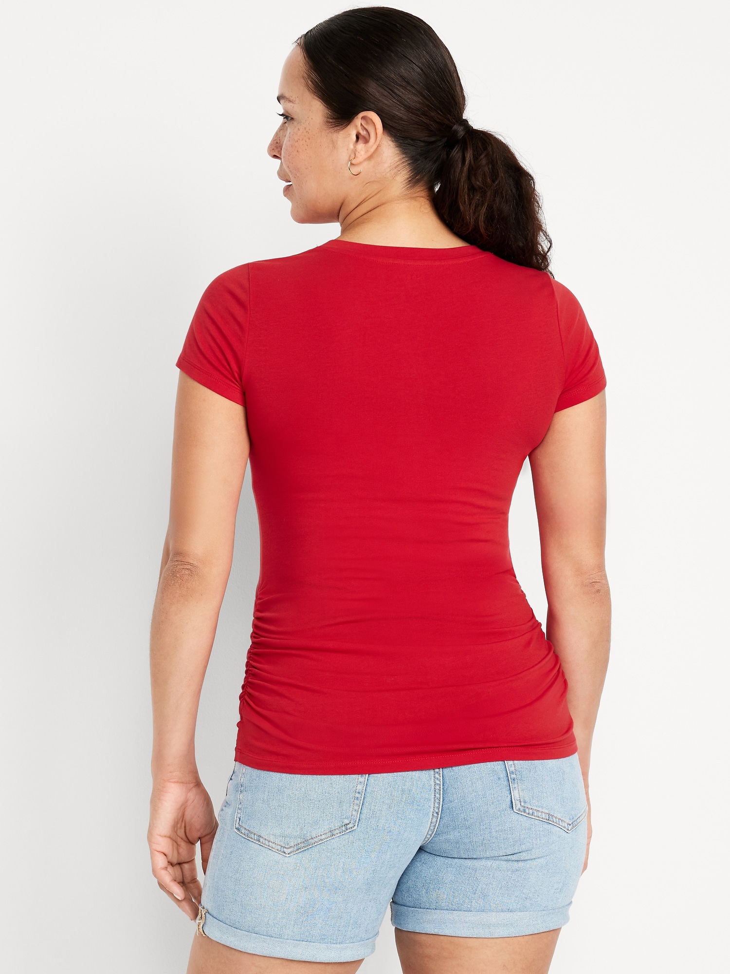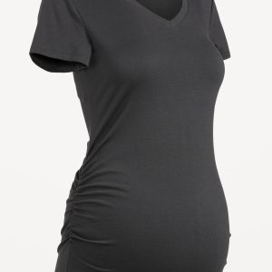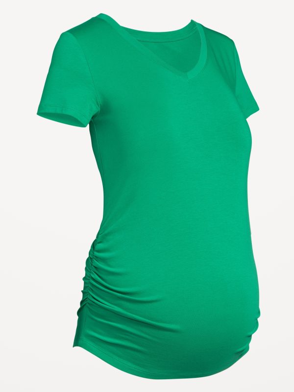 Maternity EveryWear V-Neck T-Shirt: short sleeves, shirred sides for a flexible fit, #417926
