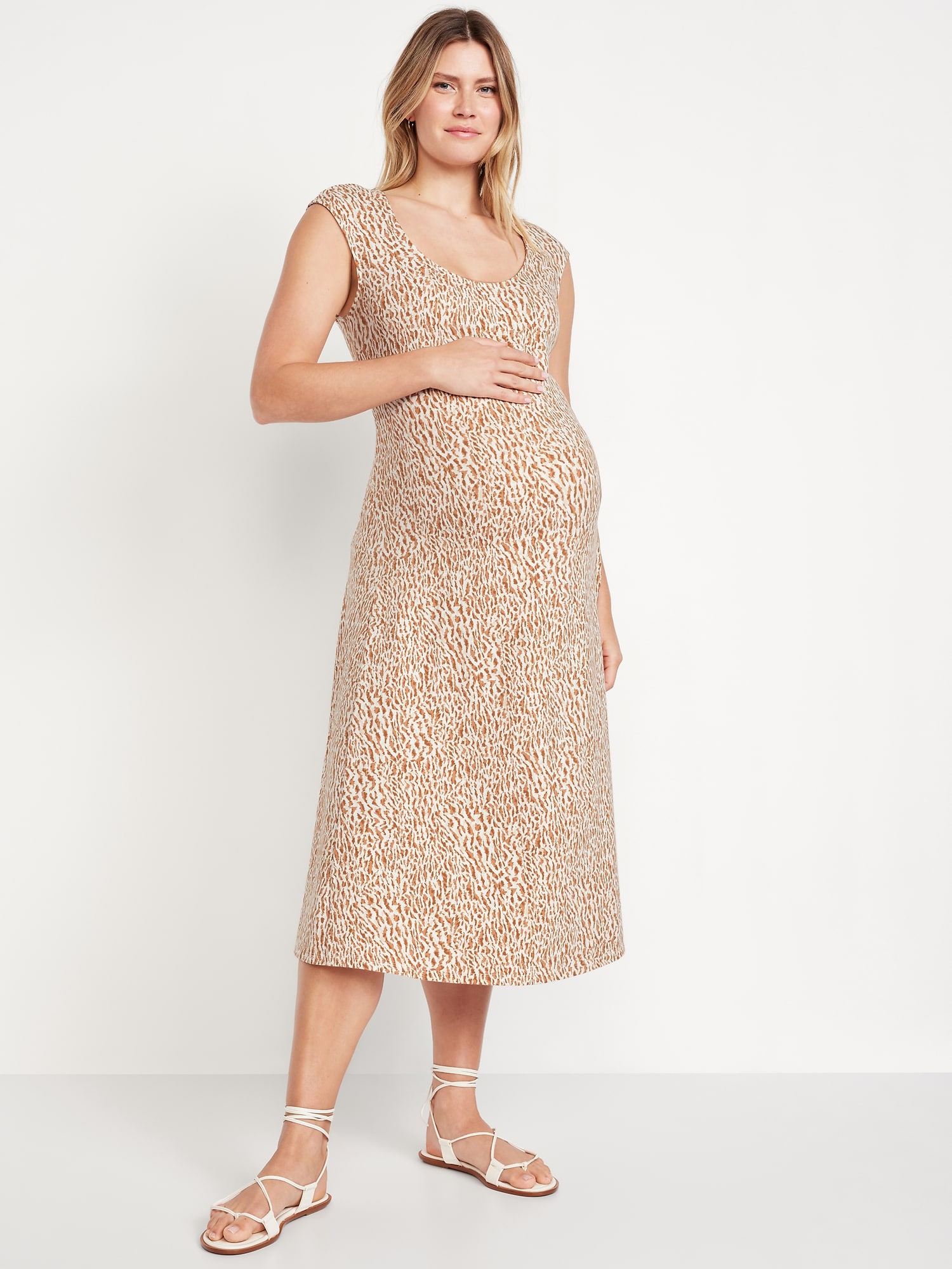 Maternity Fit & Flare Midi Dress: perfect for baby shower, scoop neck, sleeveless, #719636