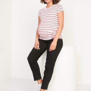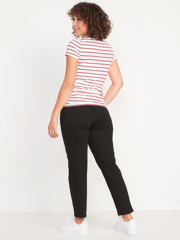 Maternity Front Low-Panel OG Straight Jeans: Our maternity OG Jeans? Think “mom jeans” …if your mom was effortlessly chic. Part ‘90s nostalgia, part new-normal comfort, served straight up with enough roominess for cool comfort. 😎, Maternity front low-panel jeans have a smooth elastic jersey panel in front for support, with a regular waistband in back, just like your fave pair., Faux fly, with scoop and coin pockets at front; Patch pockets at back., Cutoff hem., Durable, medium-wash cotton-denim, with a smidge of stretch for that broken-in fit., Made with 11% polyester and 5% recycled cotton. Less waste in the world 🌎, #759157