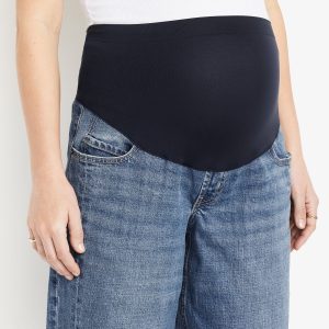 Maternity Full Panel Barrel Ankle Jeans: The effortless curved shape that’s so hot right now.full panel waistband, faux fly, barrel leg, scoop pockets, back patch pockets, #826440