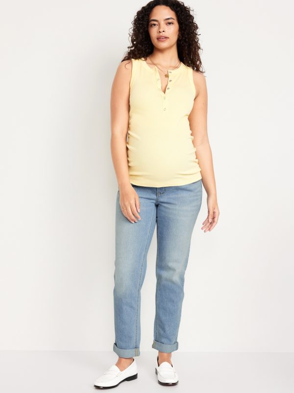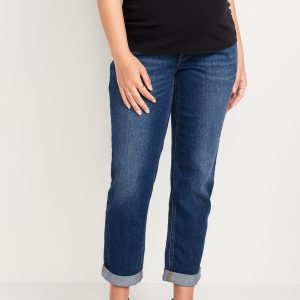 Maternity Full-Panel Boyfriend Jeans: full panel waistband, faux fly, front scoop pockets, back patch pockets, straight leg, #719611