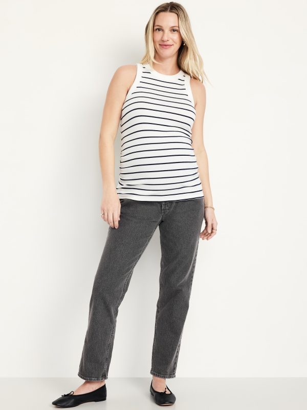 Maternity Full Panel Boyfriend Straight Jeans: full panel waistband, faux fly, front scoop pockets, back patch pockets, straight leg, #719611