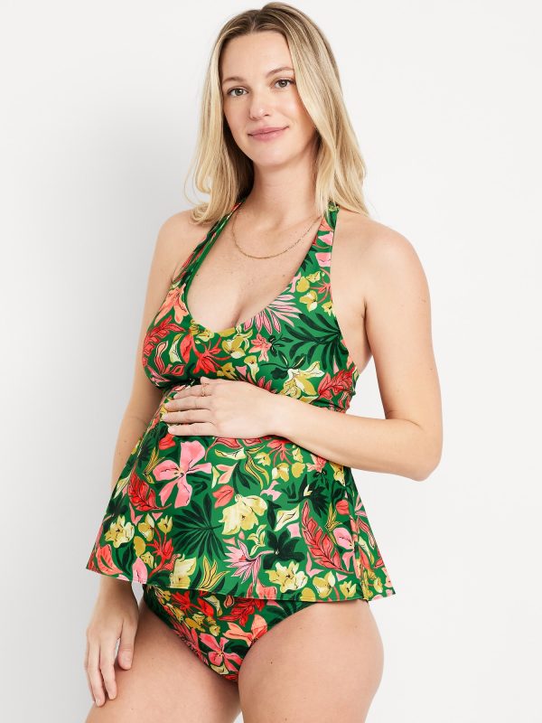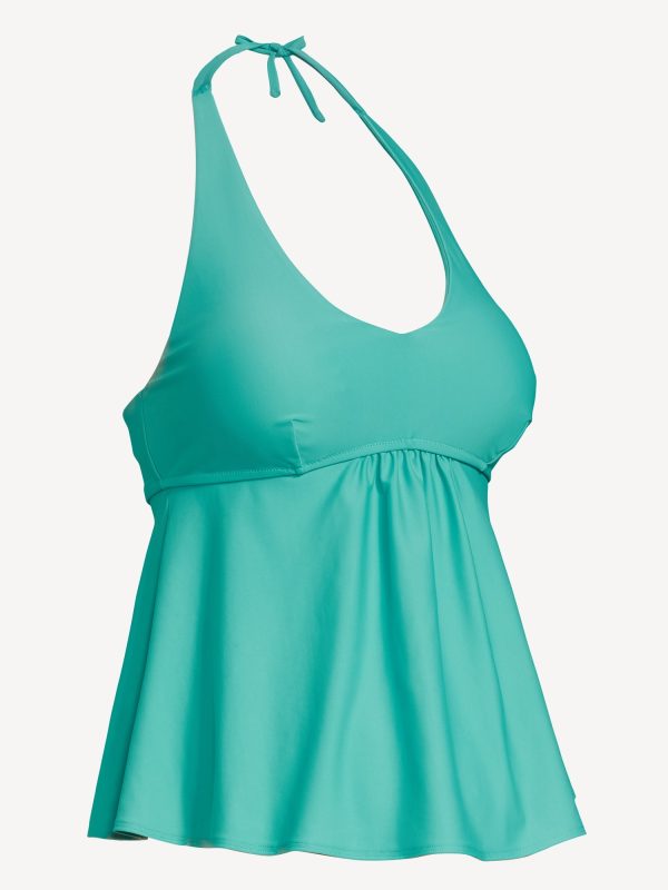 Maternity Halter Tankini Swim Top: deep v-neck, halter ties, removable molded cups, shirred detail at front, #719557
