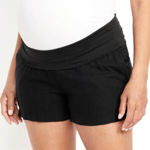 Maternity Linen-Blend Pull-On Shorts — 3.5-inch inseam: foldover jersey waistband, on-seam side pockets, back patch pockets, easy pull-on style, #746574