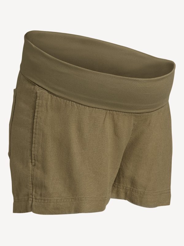 Maternity Linen-Blend Pull-On Shorts — 3.5-inch inseam: foldover jersey waistband, on-seam side pockets, back patch pockets, easy pull-on style, #746574