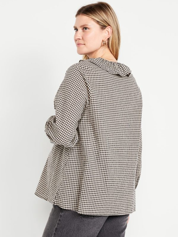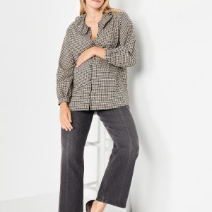 Maternity Long Sleeve Button-Down Ruffle Shirt