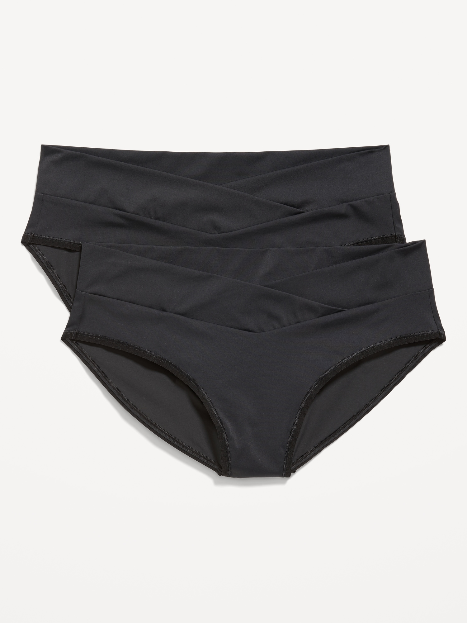 Maternity Low-Rise No-Show Bikini Underwear 2-Pack: pack includes 2 pairs of bikini underwear, elasticized cross-front waistband, elasticized leg openings, #658304