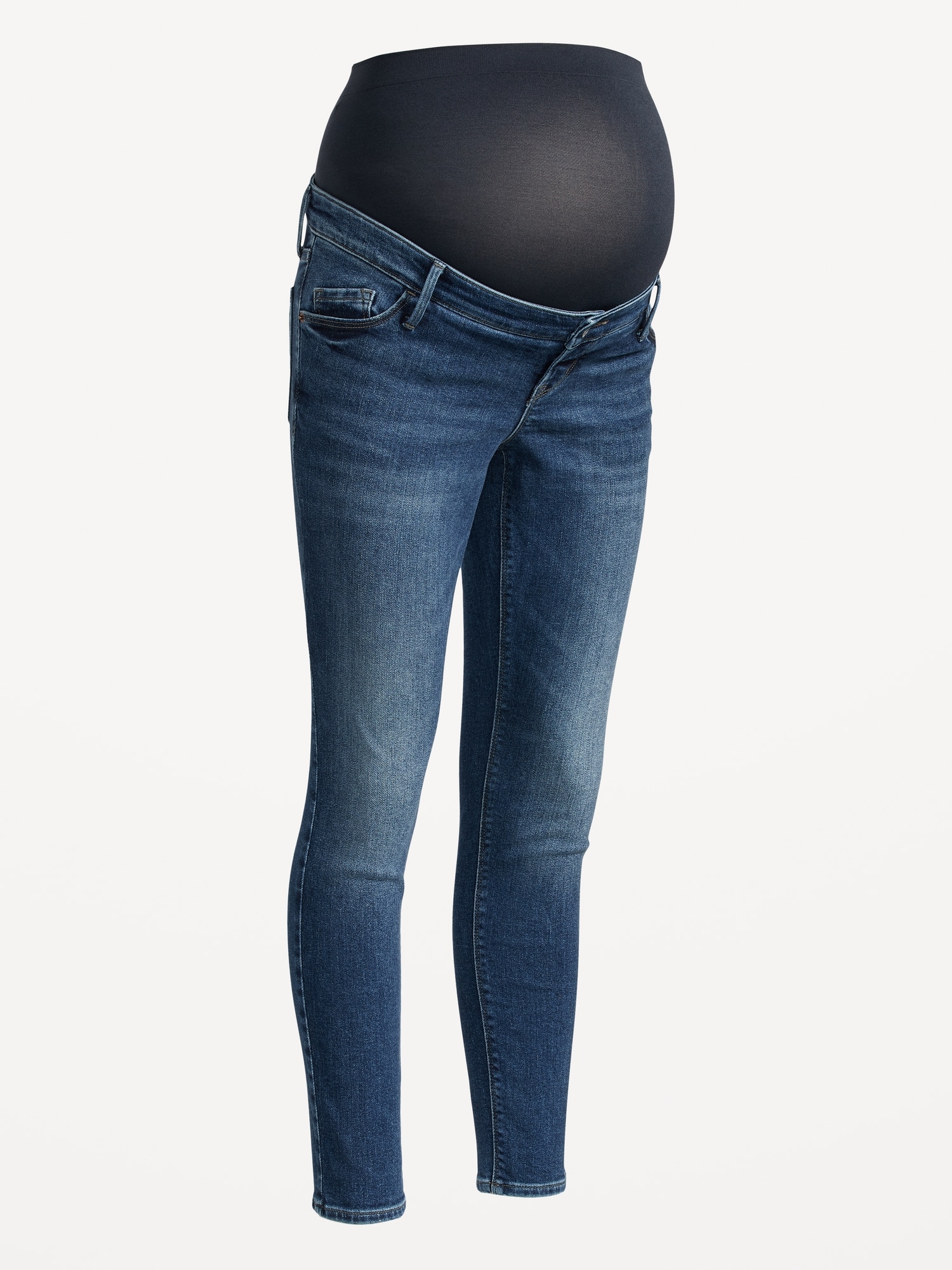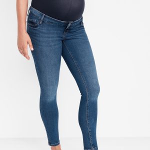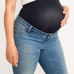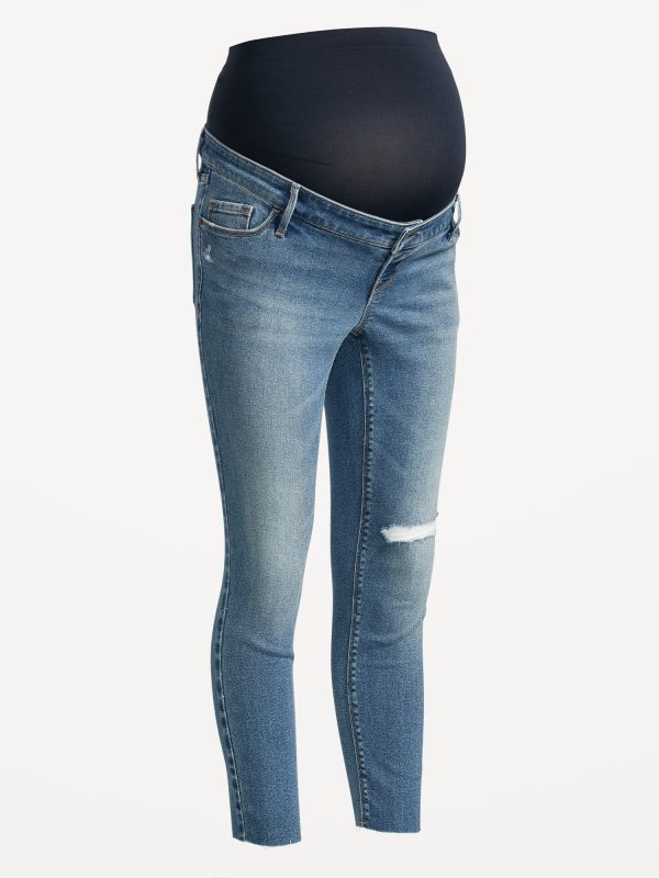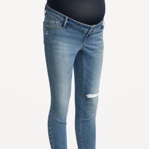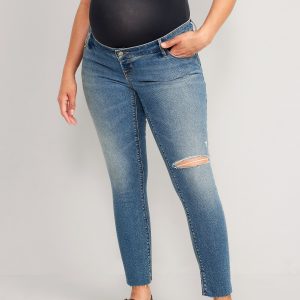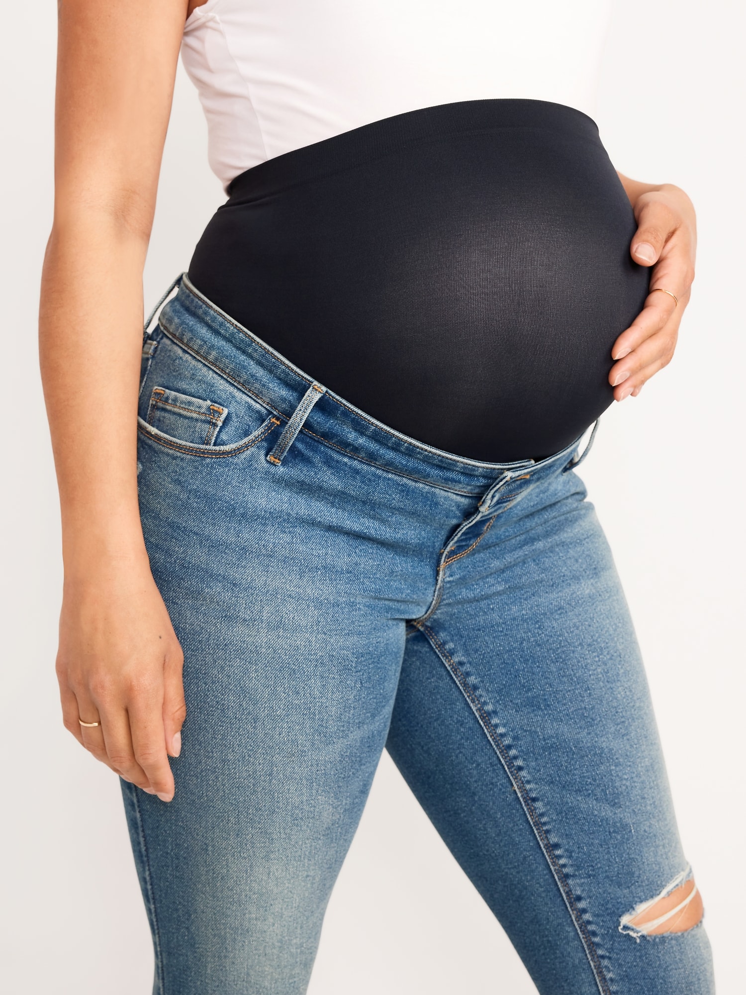 Maternity Premium Full Panel Rockstar Super Skinny Ripped Jeans: Rockstar Super Skinny jeans have a legendary fit that never quits. Forget diamonds — these are a girl’s best friend ⭐, Smooth, seamless full panel, plus a real button-front waistband, just like your regular pair., Button closure, belt loops, with faux fly., Scoop and coin pocket at front; Patch pockets at back., Cut-off leg openings, with rips at thigh to create a lived-in look., Durable, cotton-blend denim, with comfortable stretch., Made with 19% recycled polyester and 5% recycled cotton. Less waste in the world 🌎, #759121