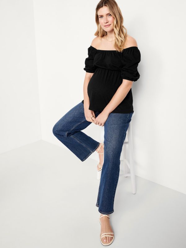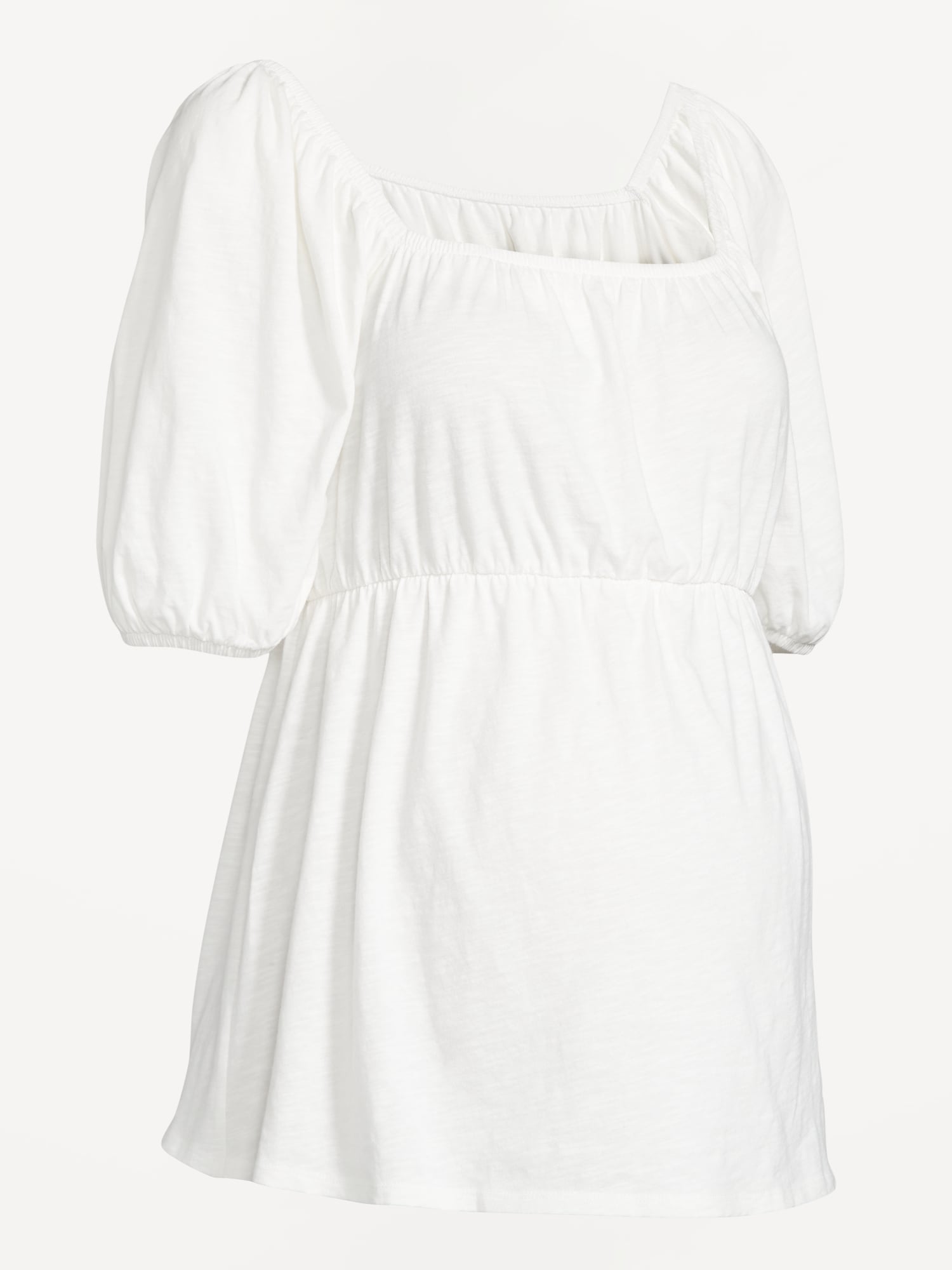Maternity Puff Sleeve Top: square neck, empire waist, elastic cuffs, flared hem, #771745