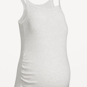 Maternity Ribbed Cami Tank Top: scoop neck, shirred sides for a flexible fit, #717036