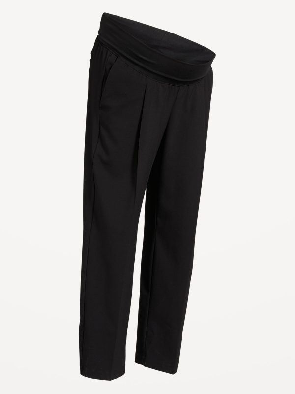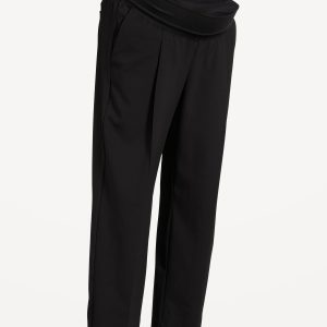 Maternity Rollover-Waist Billie Trouser: A pleated pull-on pant for work and play.rollover waistband, hip pockets, single back welt pocket, pull-on style, #433489