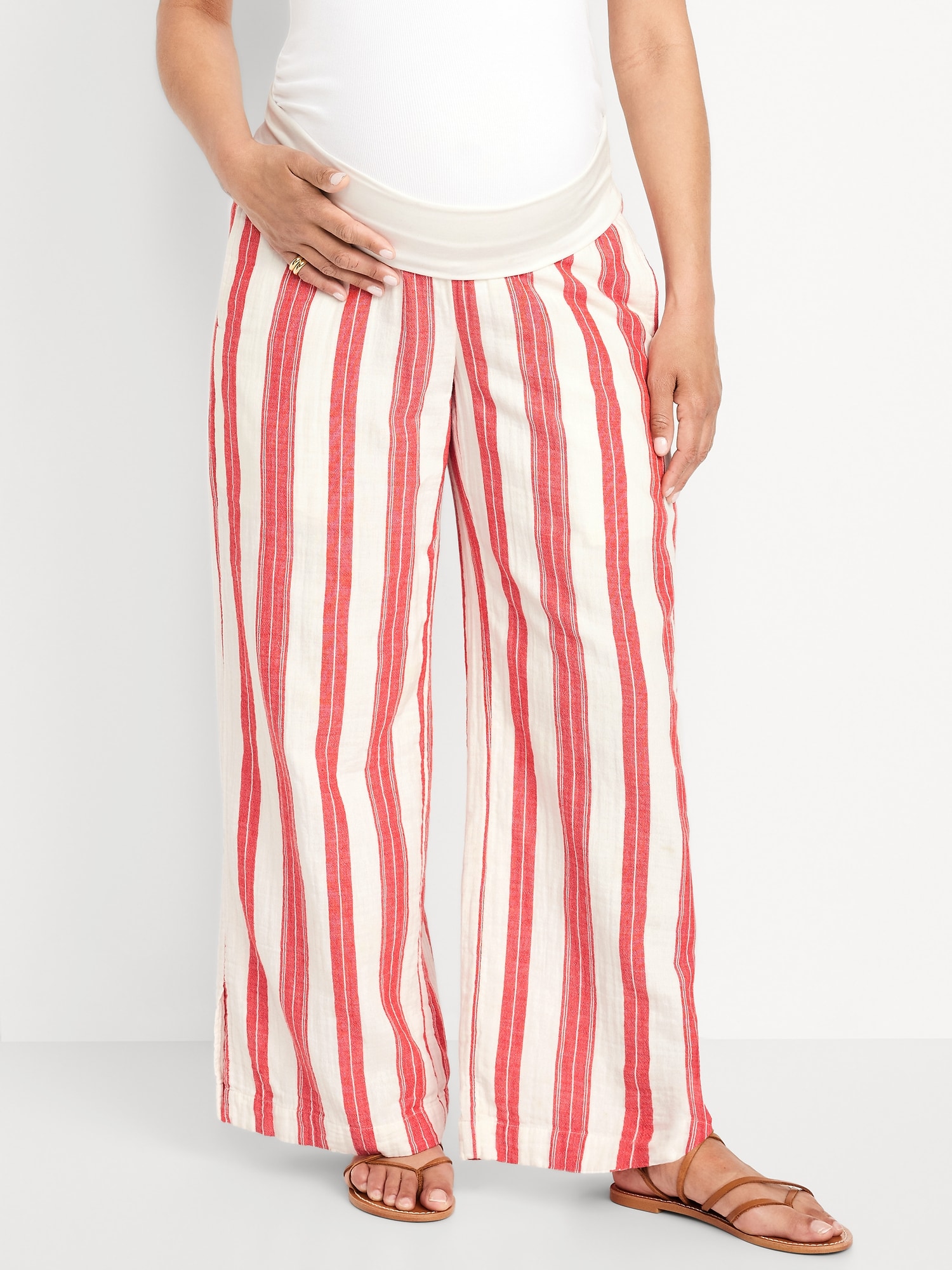 Maternity Rollover Waist Crinkle Gauze Wide-Leg Pants: A light, rippled fabric that’s begging to be beachside.rollover waist, pull-on style, on-seam hip pockets, wide leg, #771711