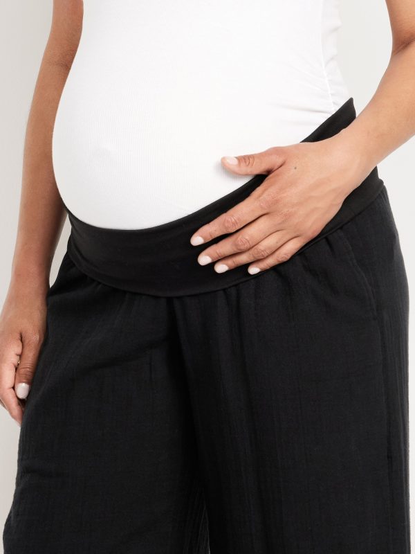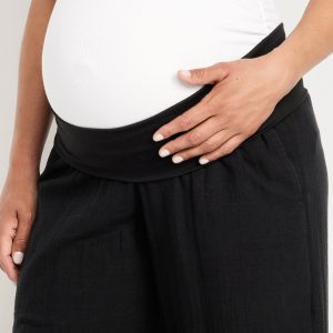 Maternity Rollover Waist Crinkle Gauze Wide-Leg Pants