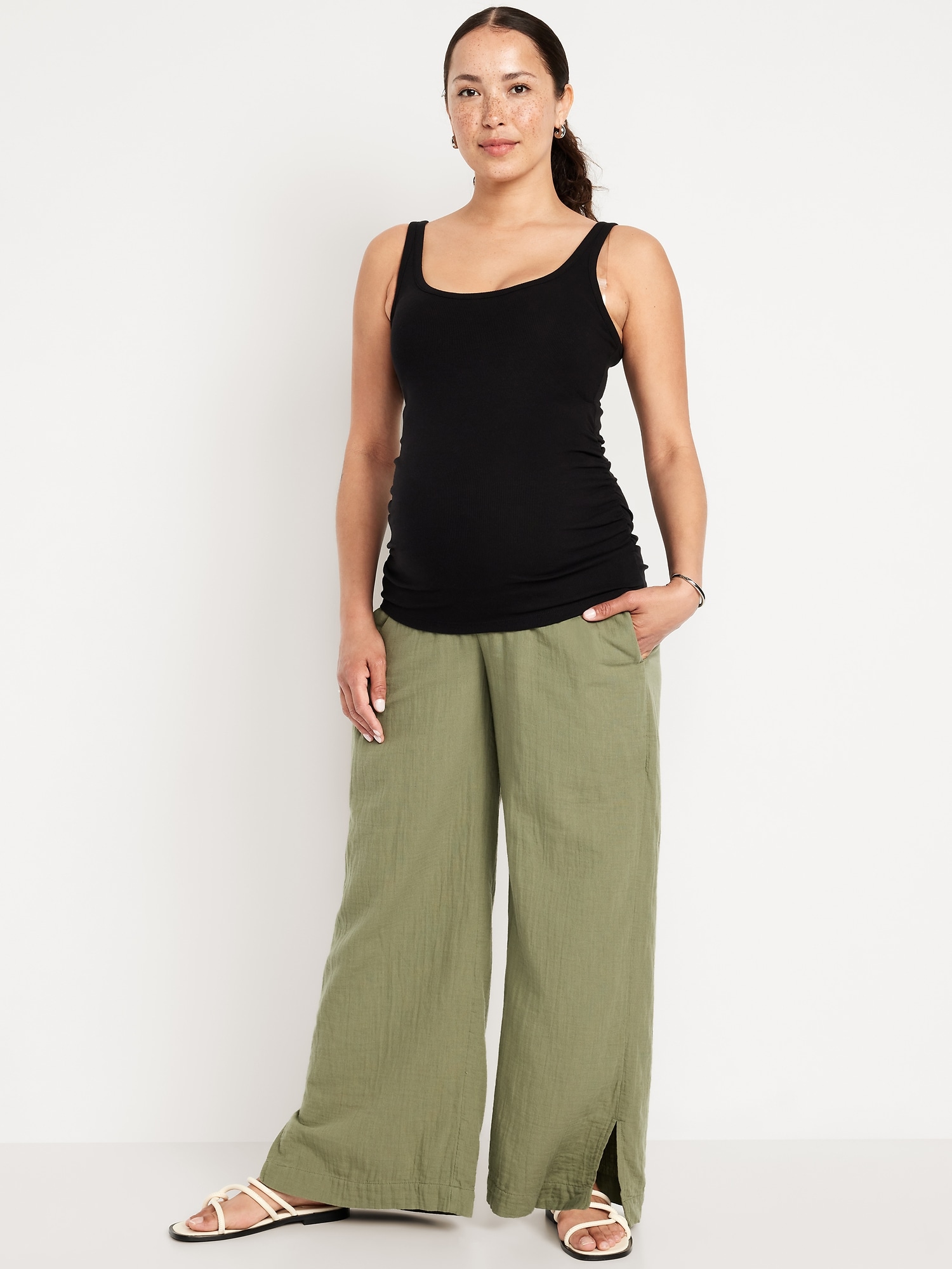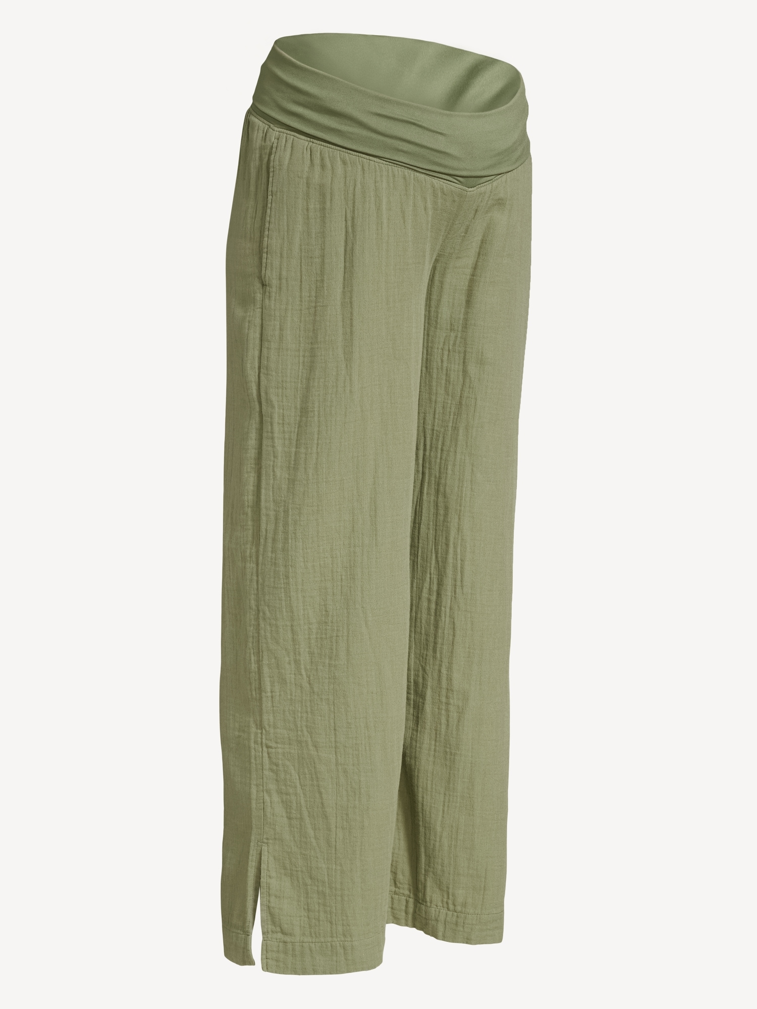 Maternity Rollover Waist Crinkle Gauze Wide-Leg Pants