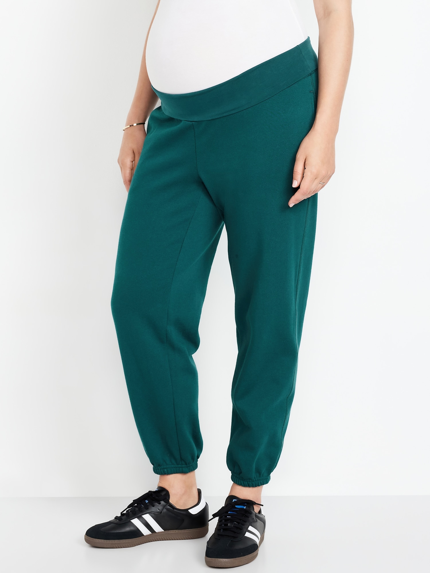 Maternity Rollover-Waist Jogger Sweatpants: rollover waistband, on-seam side pockets, a “watched all 5 seasons today” kind of pant, elasticized leg openings, pull-on style, #612127