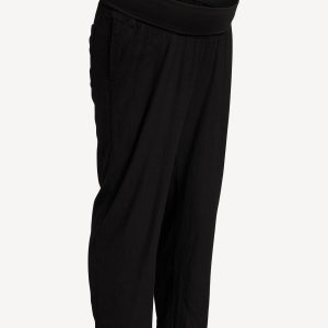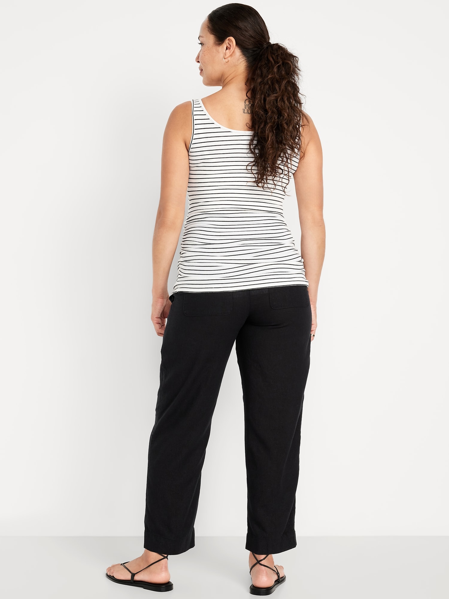 Maternity Rollover Waist Linen Pant: rollover waistband, faux fly, slit pockets at sides, patch pockets at back, #719649