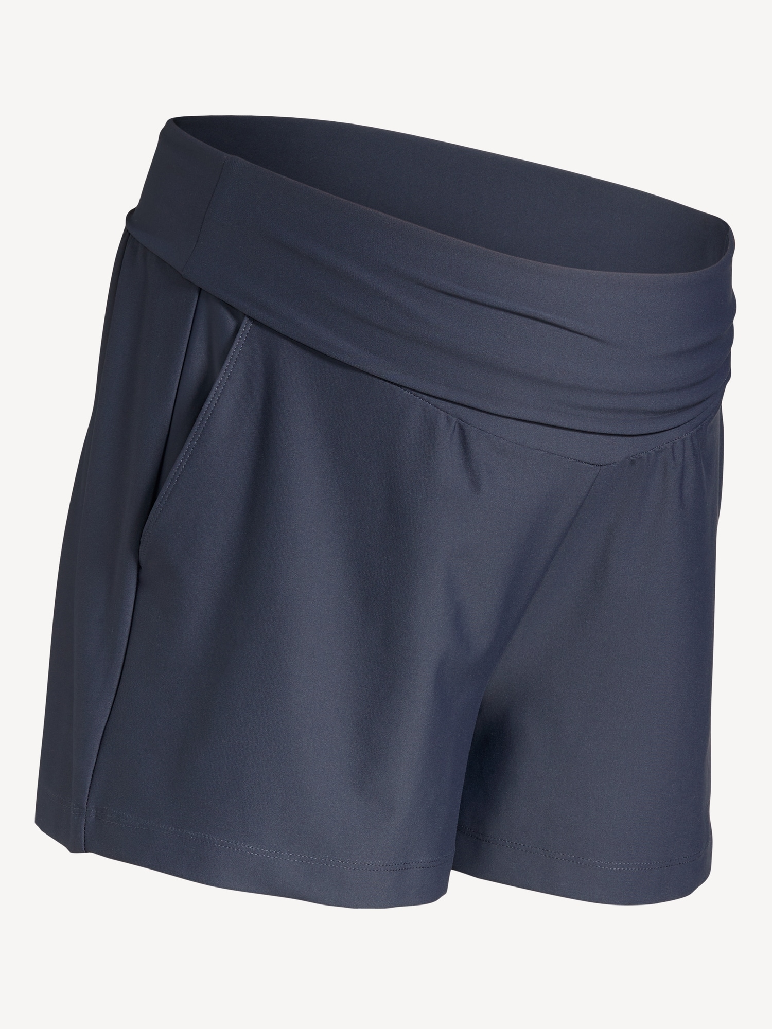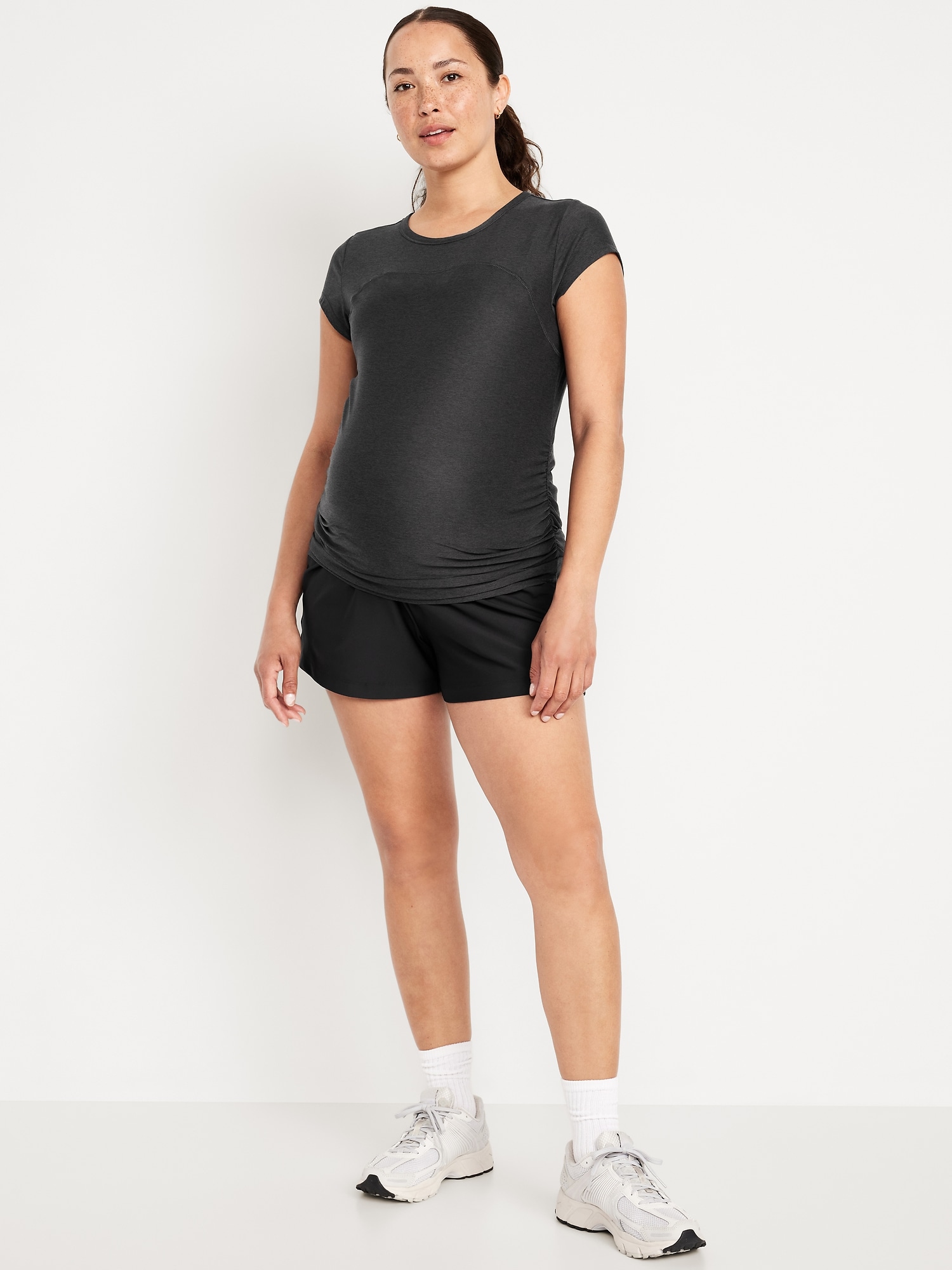 Maternity Rollover-Waist PowerSoft Shorts — 3-inch inseam: Featuring PowerSoft, light compression with a peachy-soft feel.rollover waistband, slant side pockets, vented sides, four-way stretch, go-dry wicks moisture, breathable, #771896