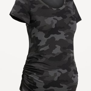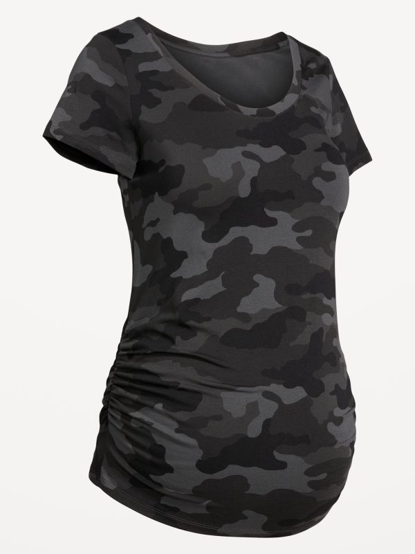 Maternity Scoop-Neck T-Shirt: rib-knit scoop neck, short sleeves, shirred sides, #828328