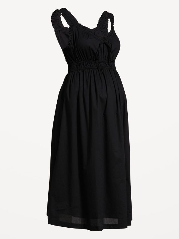 Maternity Sleeveless Fit & Flare Dress: perfect for baby shower, ruffled straps, v-neck, elasticized waist, shirred detail, #719658