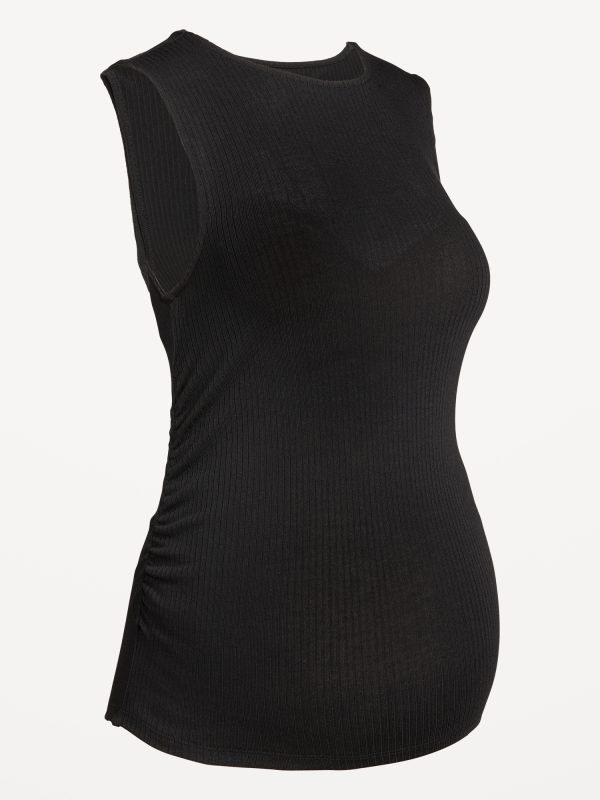 Maternity Sleeveless High-Neck Rib Top: high neck, sleeveless, shirred sides for a flexible fit, #826397