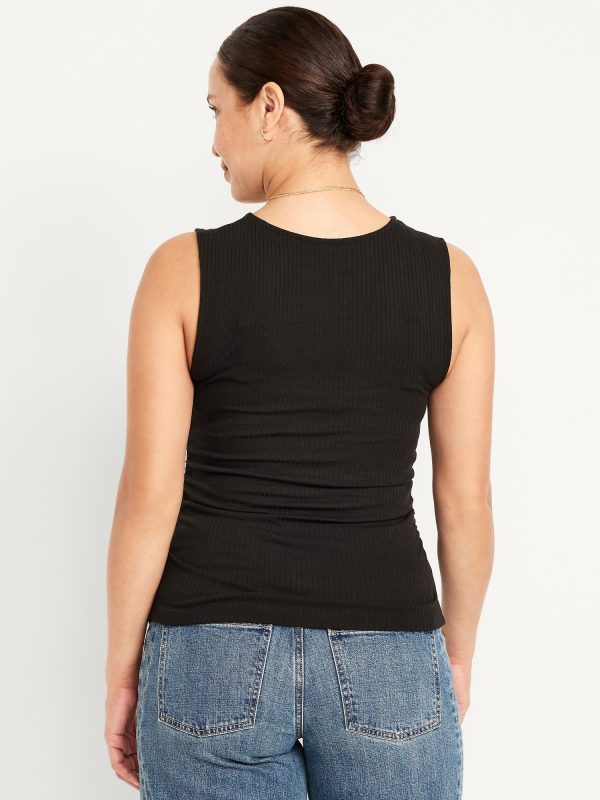 Maternity Sleeveless High-Neck Rib Top: high neck, sleeveless, shirred sides for a flexible fit, #826397