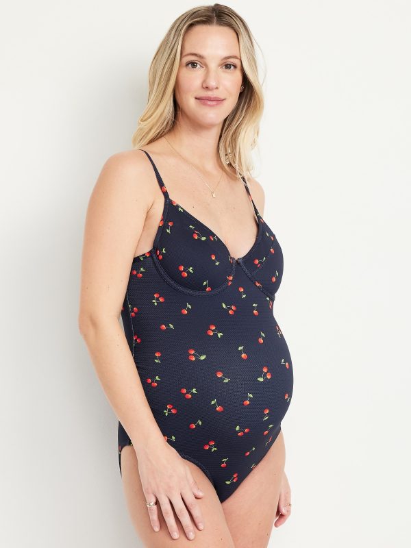 Maternity Textured One-Piece Balconette Swimsuit: adjustable spaghetti straps, underwire support, removable pads, elastic leg openings, #719528