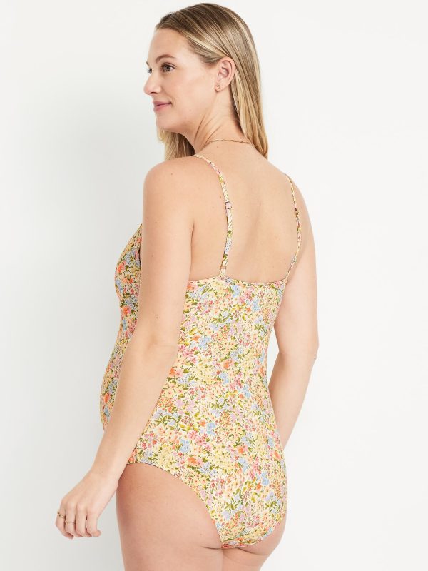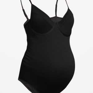 Maternity Textured One-Piece Balconette Swimsuit: adjustable spaghetti straps, underwire support, removable pads, elastic leg openings, #719528