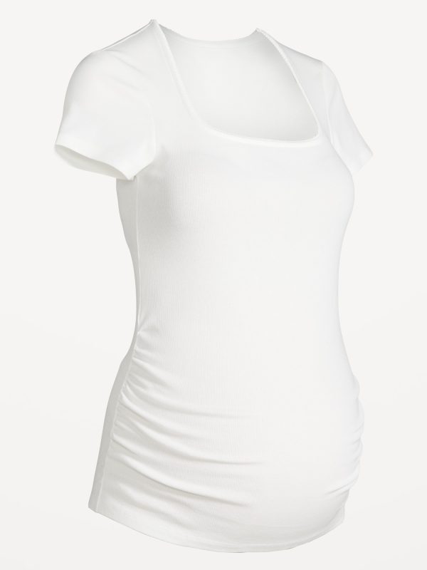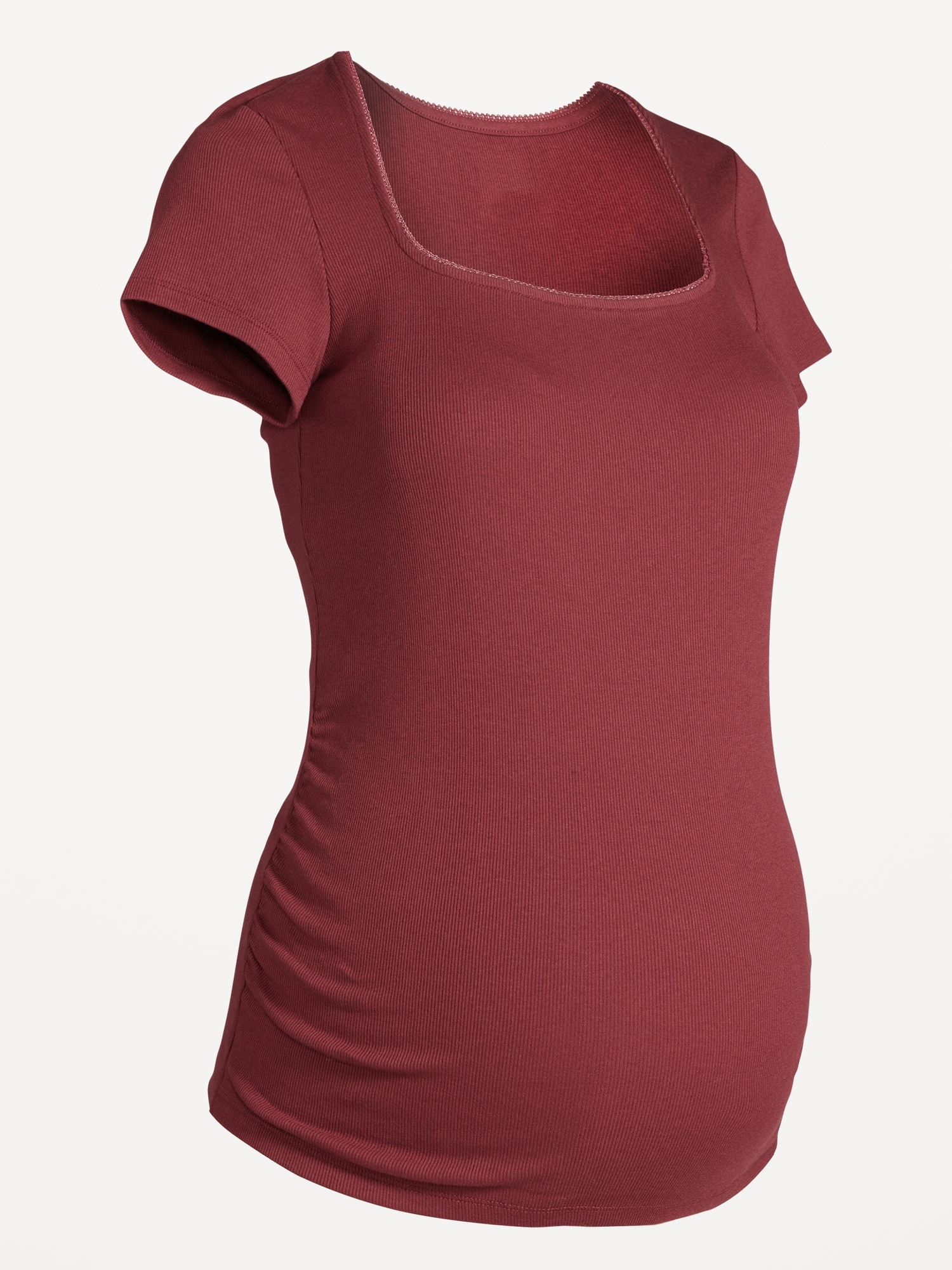 Maternity Trapeze-Neck T-Shirt: rib knit, short sleeves, shirred sides, #775071