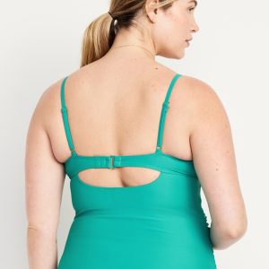 Maternity Twist-Front Nursing Tankini Swim Top: adjustable shoulder straps, detachable clips for convenient nursing, V-neck, cutout in back, adjustable clasp fastening, side shirring for a flexible fit, removable molded cups, quick-drying tricot, fully lined, matching swimwear for the whole family, #870704