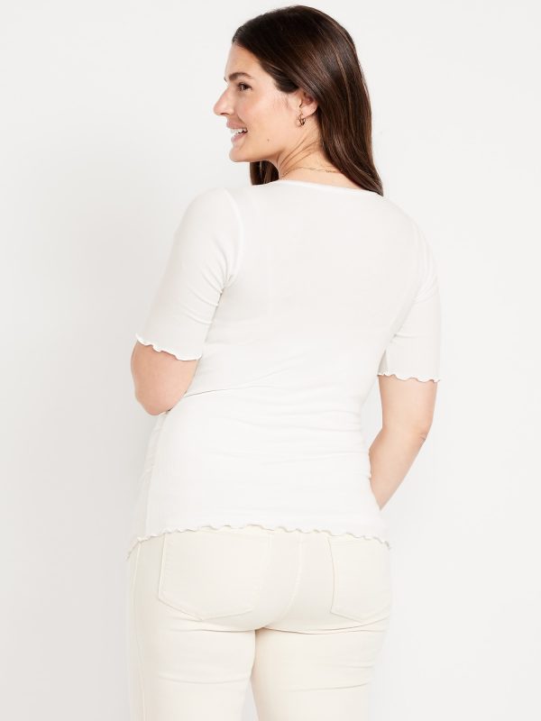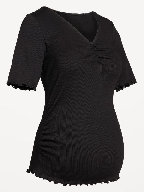 Maternity V-Neck Elbow-Sleeve Top: v-neck, elbow-length sleeves, shirred sides for a flexible fit, lettuce-edge trim, #826402