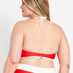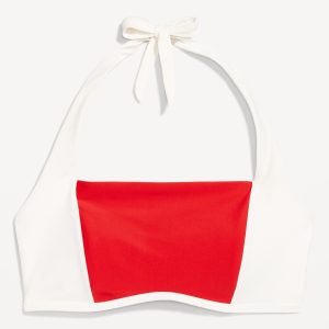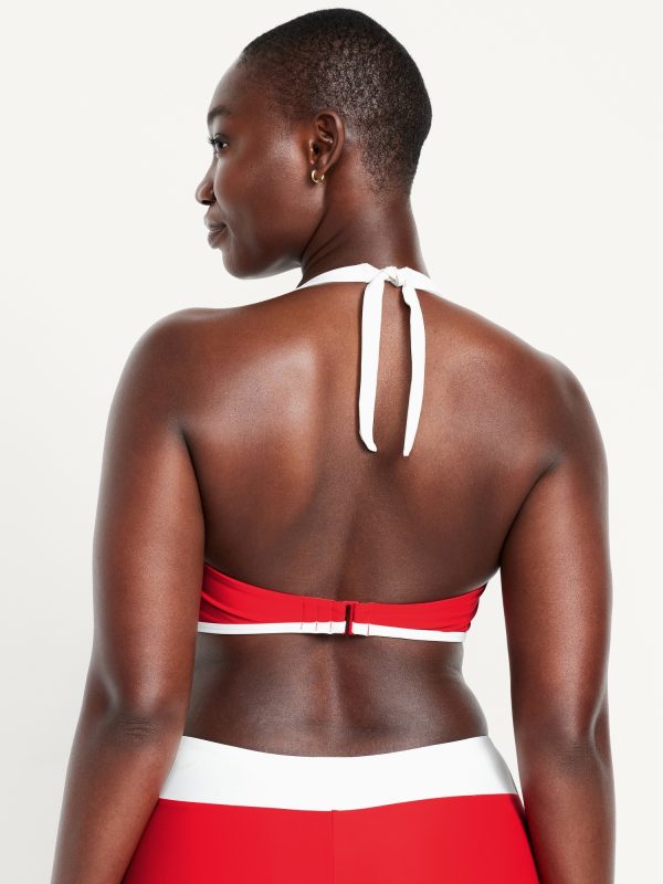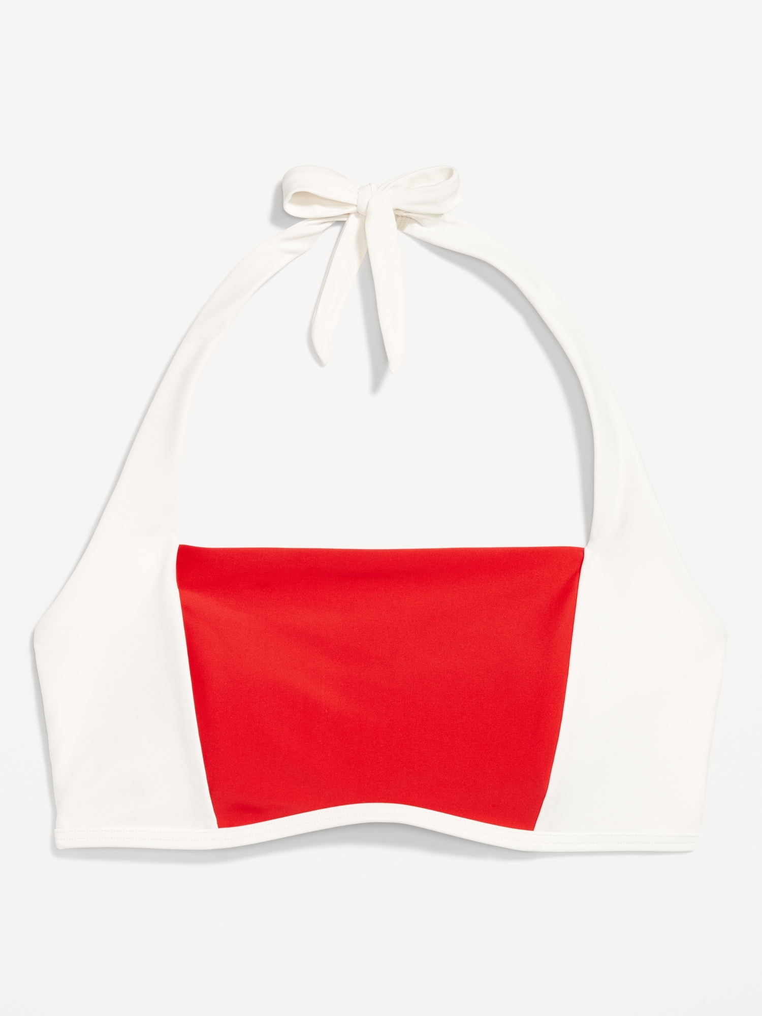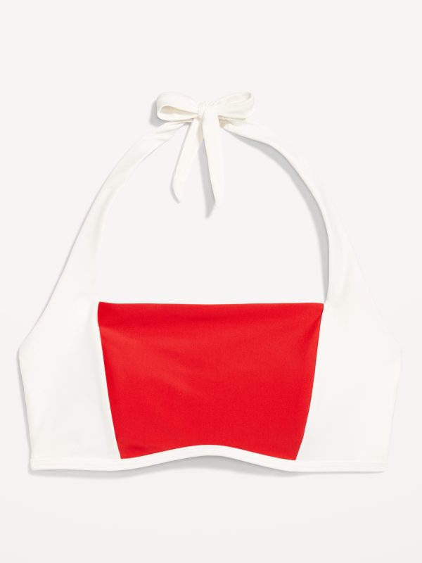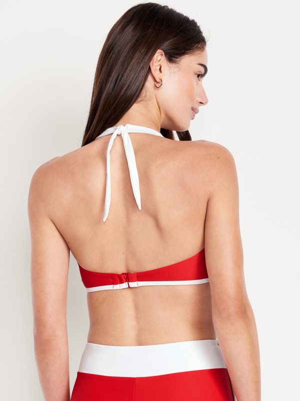 Matte Halter Swim Top: straight neck, tie-back halter straps, paneled front, removable pads, hook-and-bar back closure, #747888