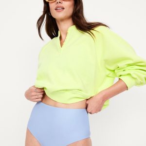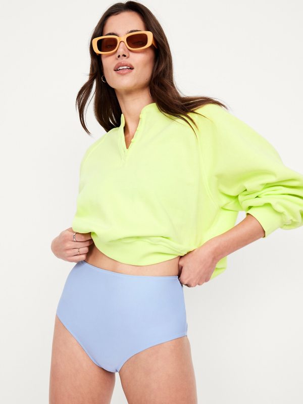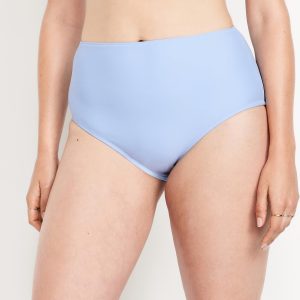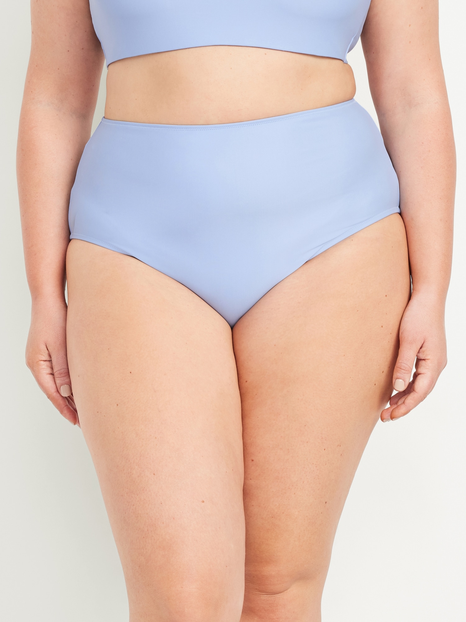 Matte High-Waisted Bikini Swim Bottoms: elasticized waist, elasticized leg openings, prints vary, #660456