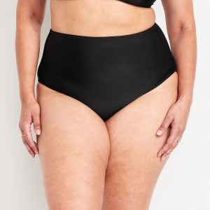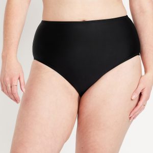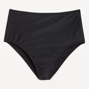 Matte High-Waisted Bikini Swim Bottoms: elasticized waist, elasticized leg openings, prints vary, #660456