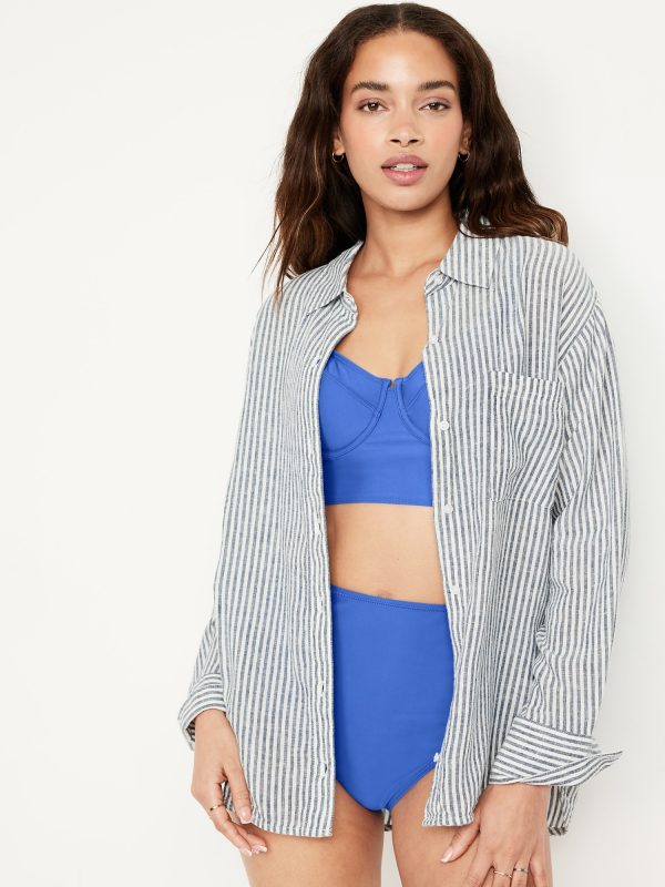 Matte High-Waisted Bikini Swim Bottoms: elasticized waist, elasticized leg openings, prints vary, #660456