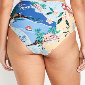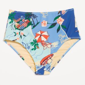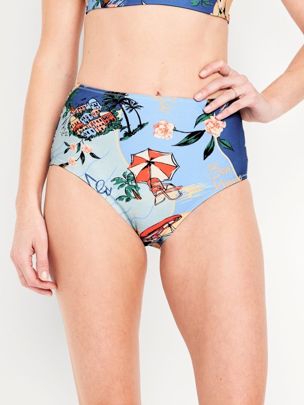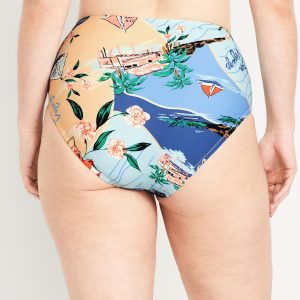 Matte High-Waisted Bikini Swim Bottoms: elasticized waist, elasticized leg openings, prints vary, #660456