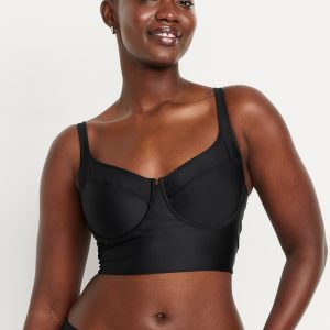 Matte Longline Balconette Swim Top: wide adjustable straps, underwire support, removable pads, #660773