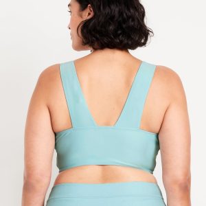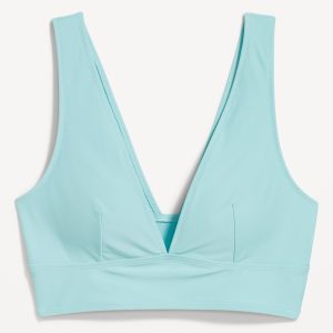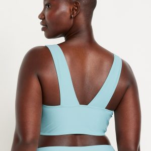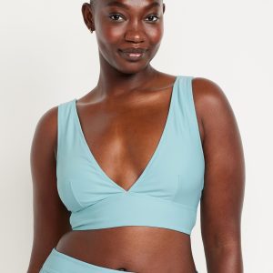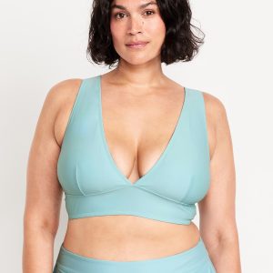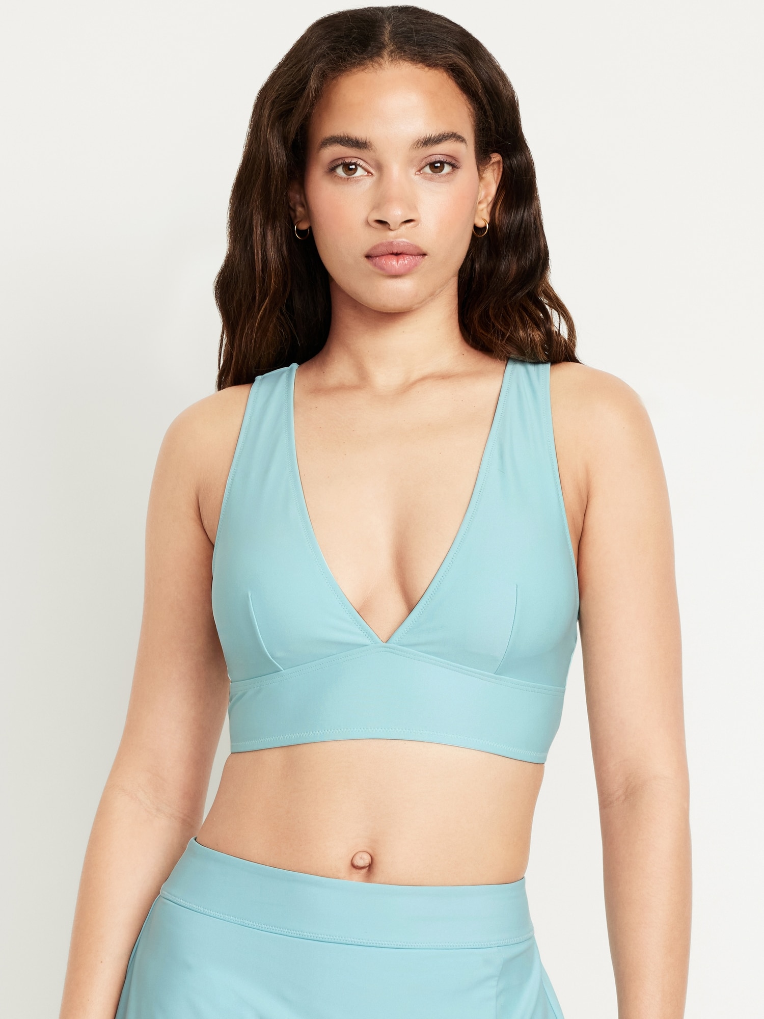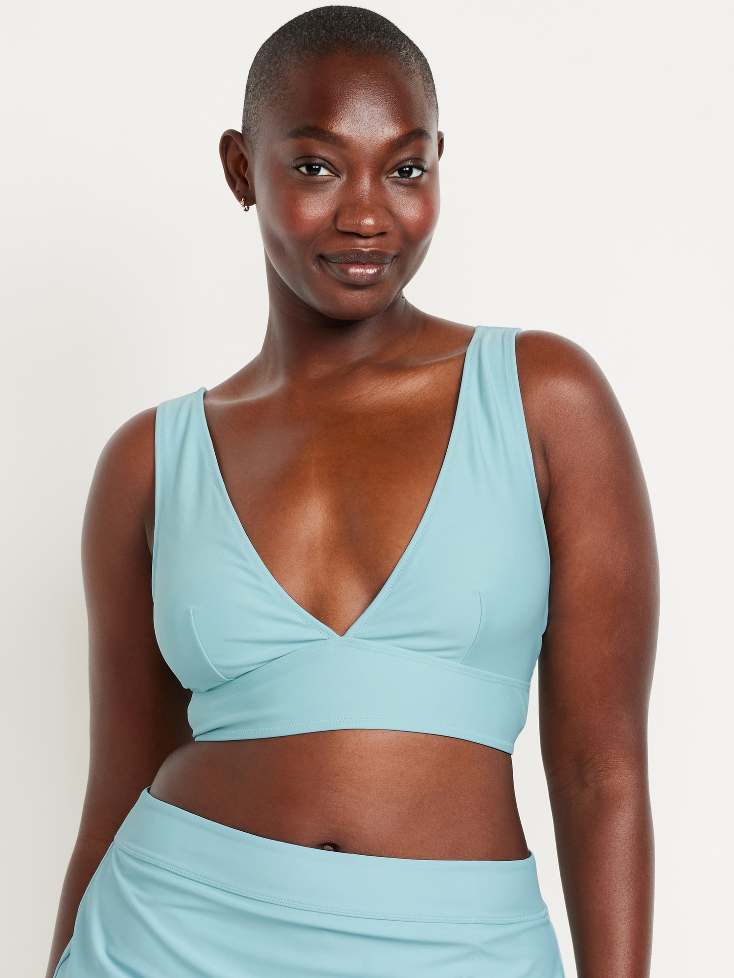 Matte Longline Bikini Swim Top: plunging v-neck, wide straps, removable pads, elastic-banded hem, #865325