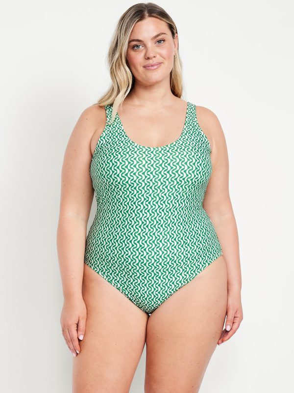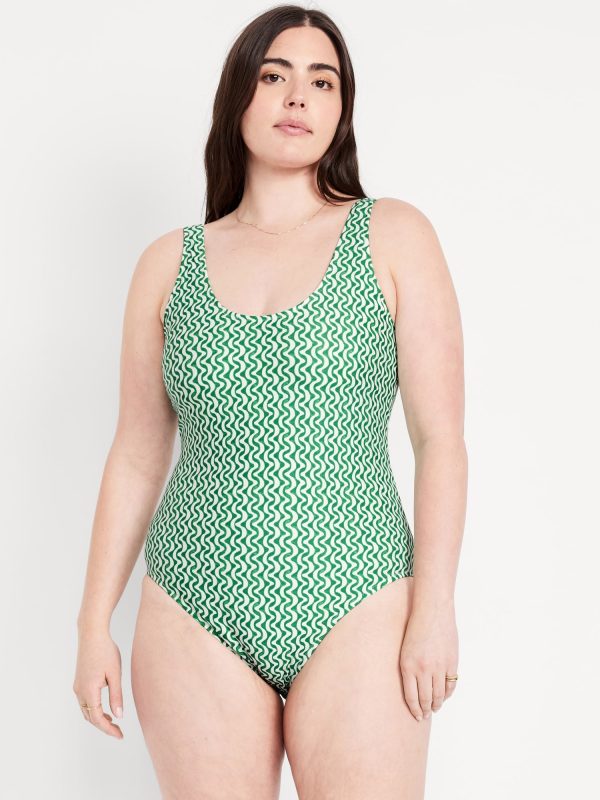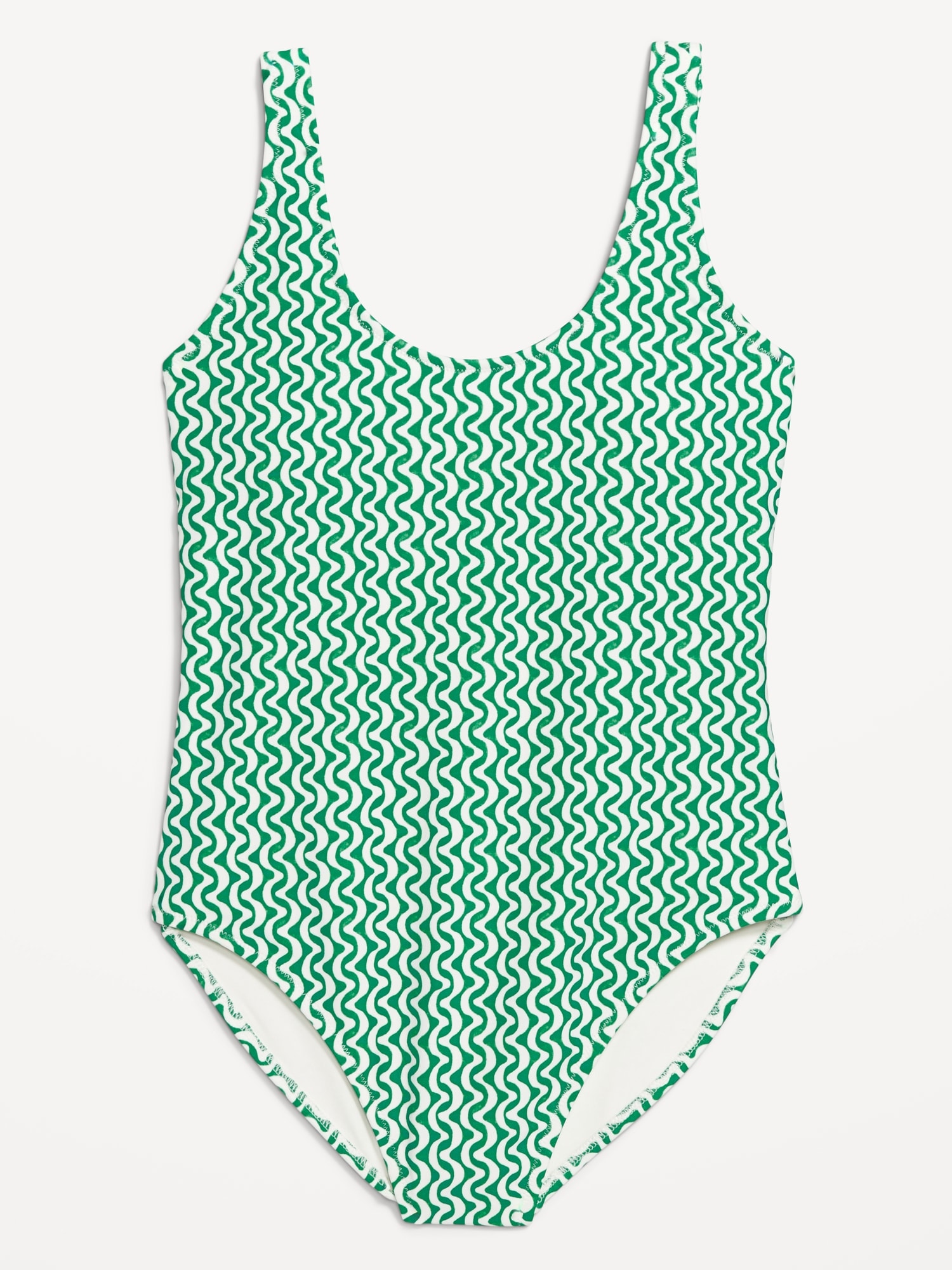 Matte One-Piece Swimsuit: scoop neck, wide straps, low scoop back, removable pads, elastic leg openings, #604387
