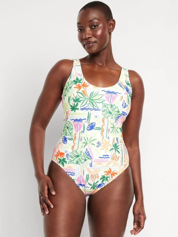 Matte One-Piece Swimsuit: scoop neck, wide straps, low scoop back, removable pads, elastic leg openings, #604387