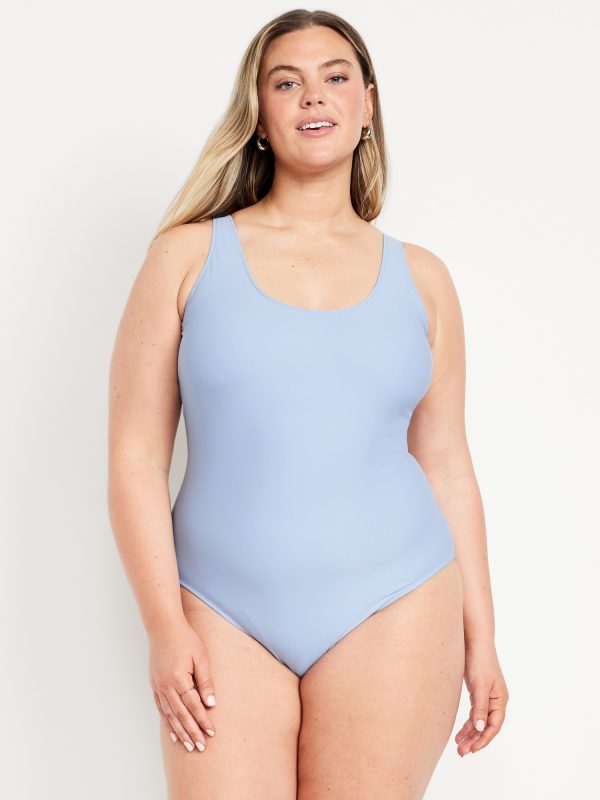 Matte One-Piece Swimsuit: scoop neck, wide straps, low scoop back, removable pads, elastic leg openings, #604387