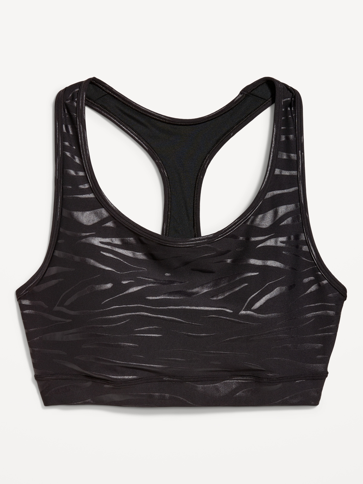 Medium Support PowerSoft Racerback Sports Bra: Featuring PowerSoft. Light compression meets a peachy-smooth, sweat-wicking fabric.stabilizing straps, racerback, front mesh lining with shaped cups, removable pads, banded-elastic hem, go-dry wicks moisture, #569574