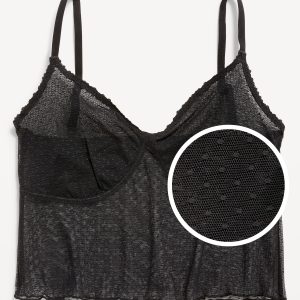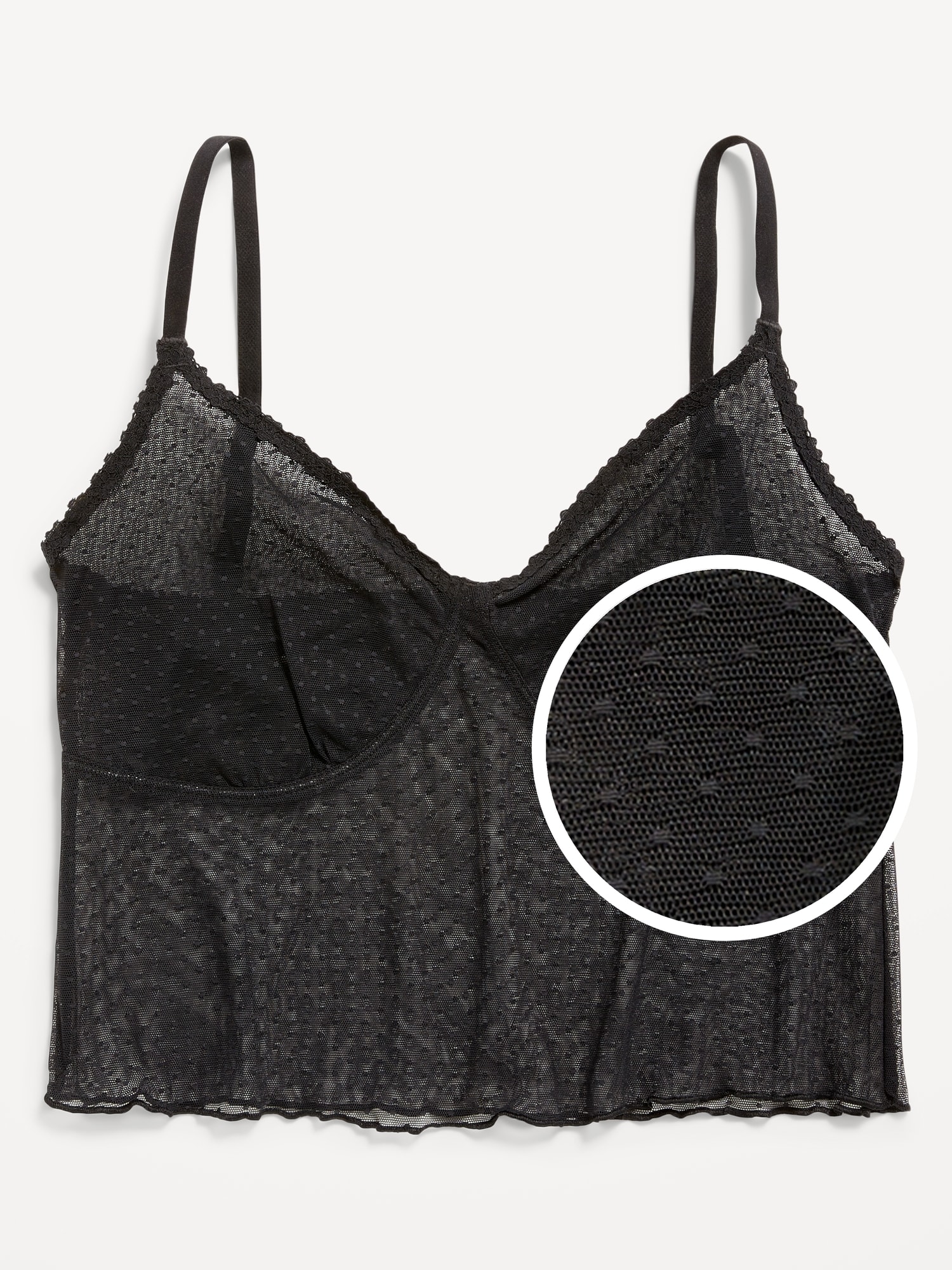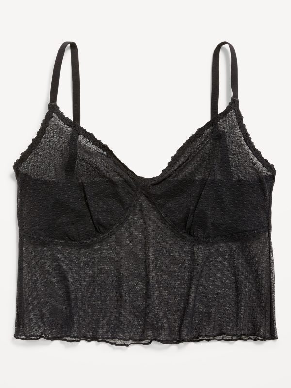 Mesh Cami Bra: lace-trim elastic neckline, adjustable straps, #800567