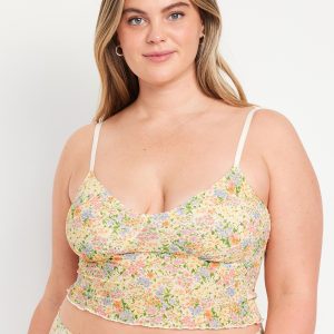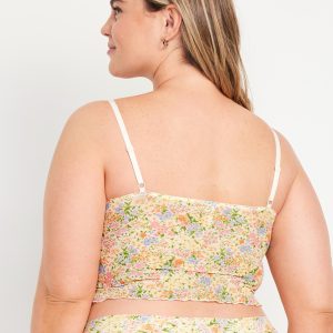 Mesh Cami Lounge Top: scoop neck, adjustable straps, ruffled hem, seamed shirred cups, #687043