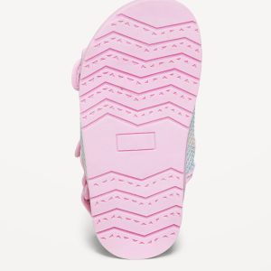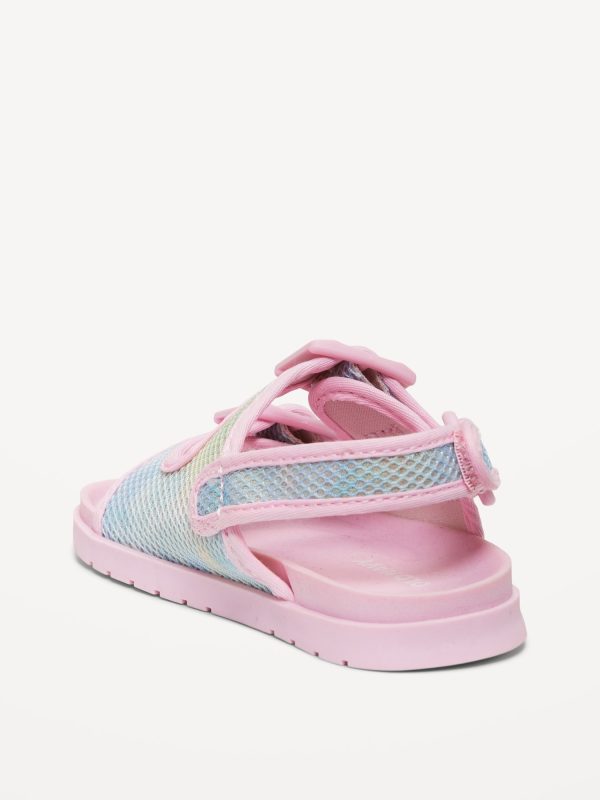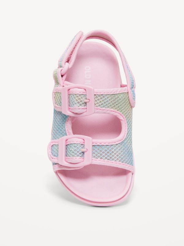 Mesh Double-Strap Sandals for Toddler Girls: double buckled straps across foot, adhesive secure-close ankle strap, cushioned foot bed, textured outsole, #762302