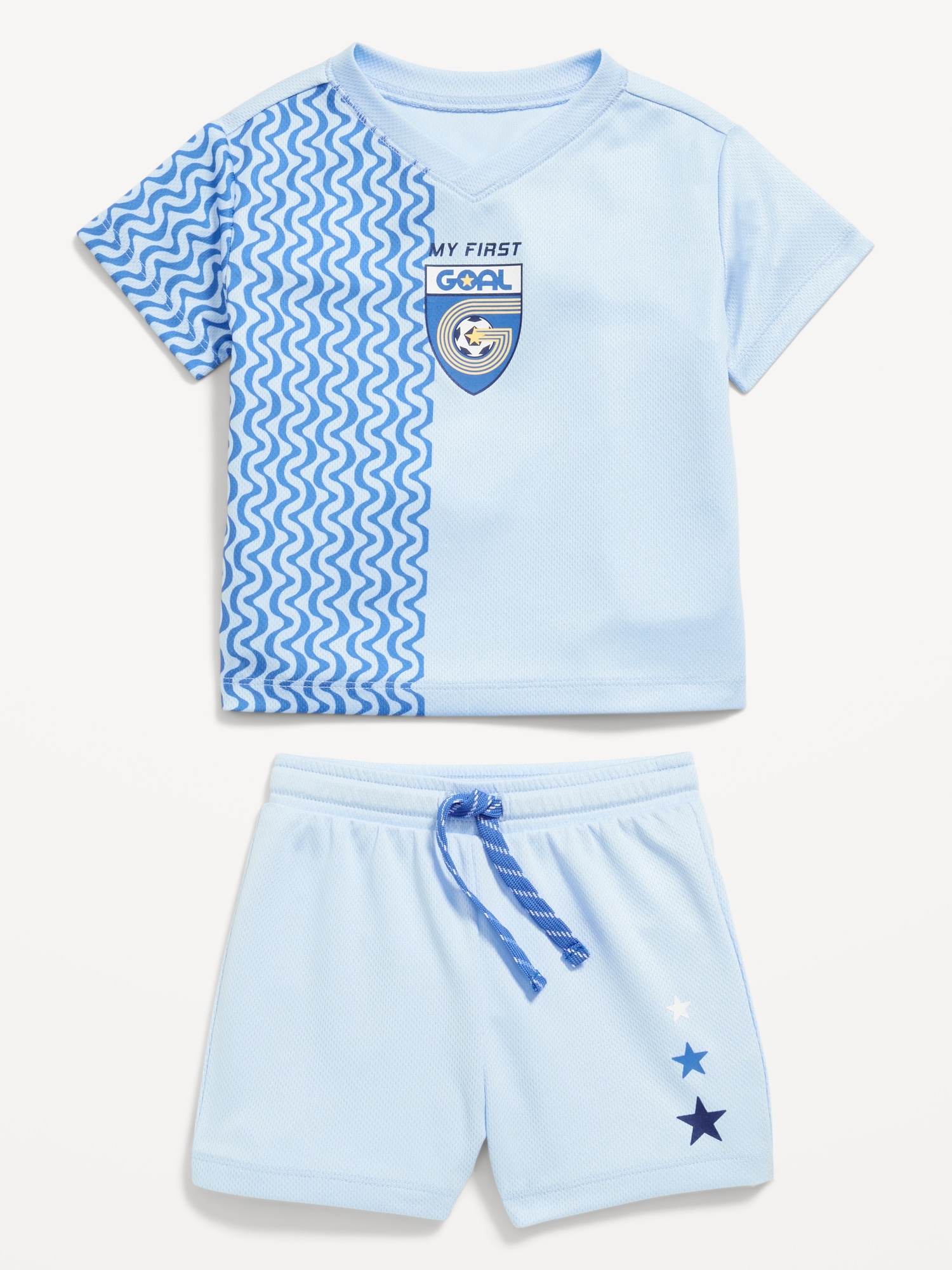 Mesh Graphic Top and Shorts Set for Baby: v neck, short sleeves, graphic at front, matching shorts, elasticized waistband, functional drawstring, online exclusive, #761913