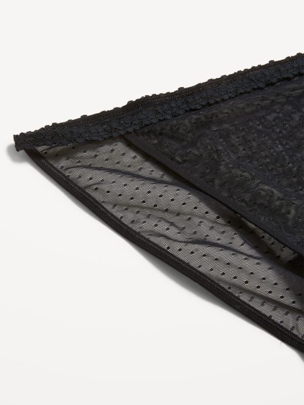 Mesh String Bikini Underwear: lace-trim waistband, elasticized waist, elasticized leg openings, #800576