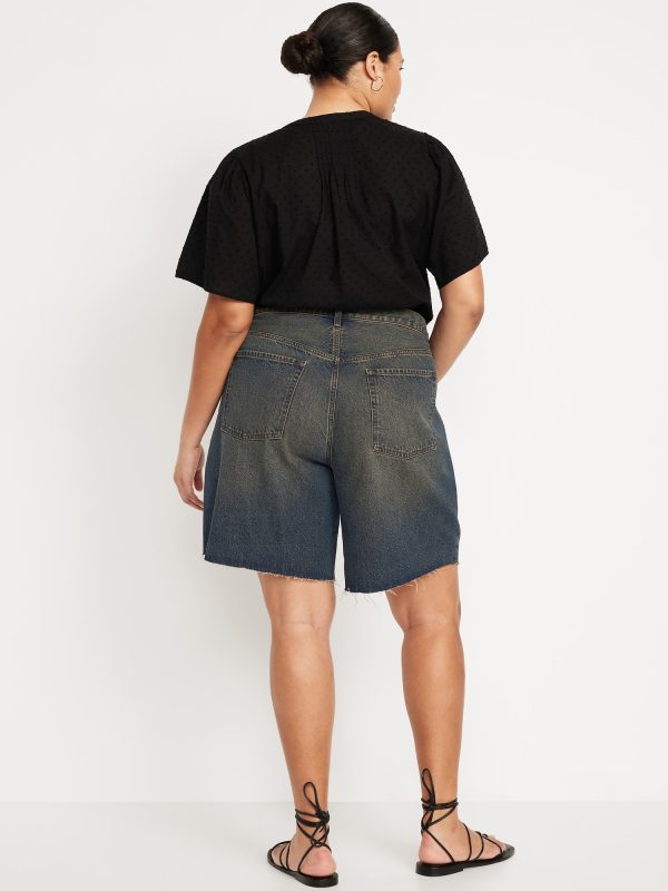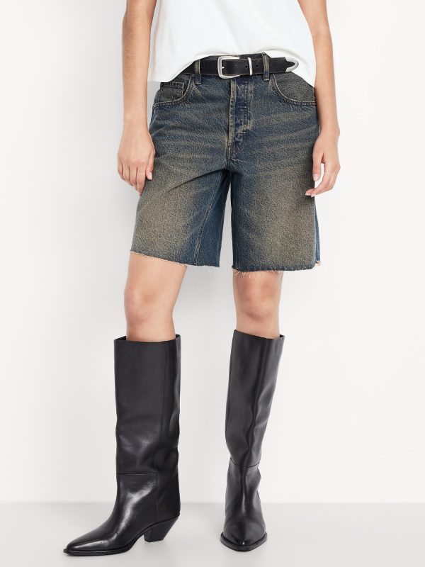 Mid-Rise Baggy Cut-Off Jean Bermuda Shorts — 9-inch inseam