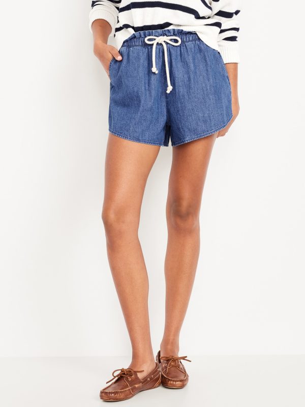 Mid-Rise Jean Volume Shorts: mid-rise elastic-drawstring waist, diagonal hip pockets, #844572