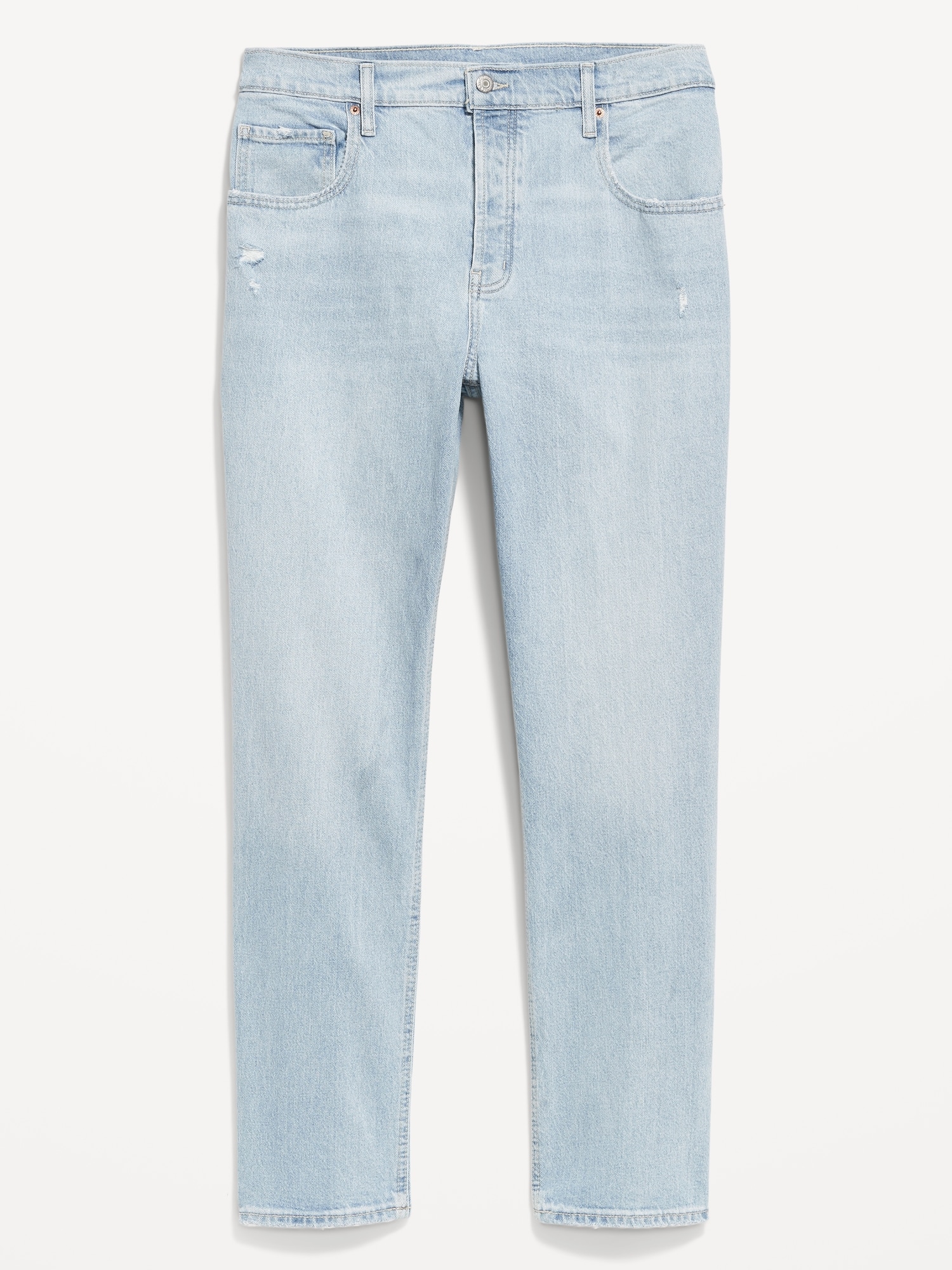 Mid-Rise Slouchy Straight Jeans: Low-slung and laid back, with puddling at the hem.mid-rise waist that’s low slung on the hips, hidden button fly, straight leg, #805756