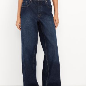Mid-Rise Slouchy Wide-Leg Jeans: Low-slung and laid back with a long silhouette.mid-rise waist that’s low slung on the hips, hidden button fly, wide leg puddles at hem, #805772